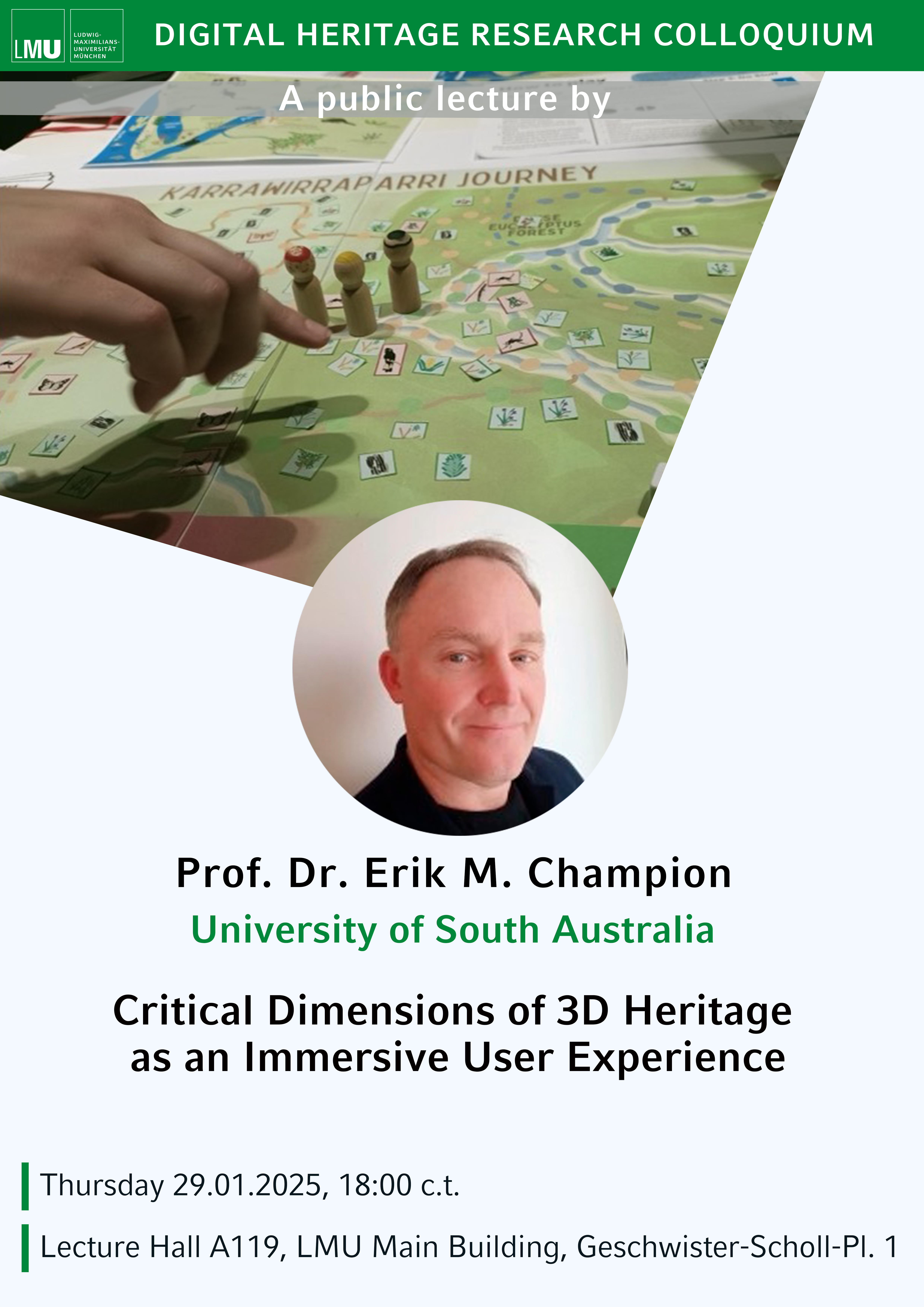 As part of the Digital Heritage Research Colloquium, Prof. Dr. Erik M. Champion from the University of South Australia Playful Cultures Lab will present a lecture titled “Critical Dimensions of 3D Heritage as an Immersive User Experience.”